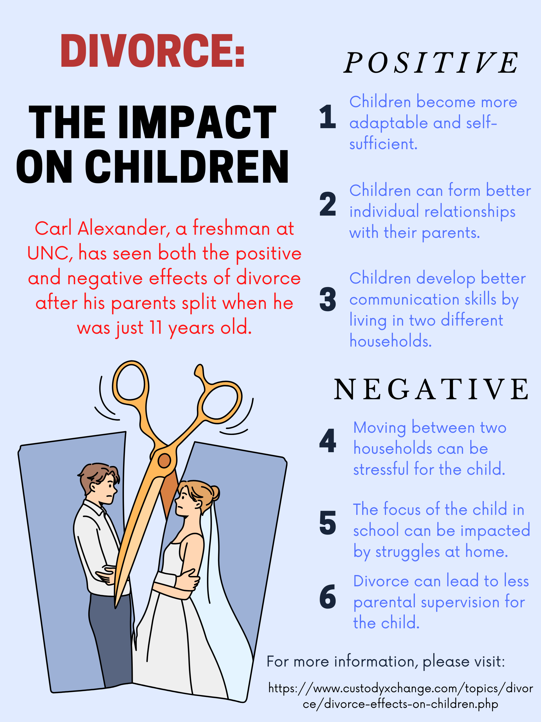 Carl has been one of my closest friends since middle school. Over the years, I have seen him develop into a more socially confident person who works tirelessly in the classroom. Carl wants to see you succeed, and he approaches life with a positive attitude. With this story, he provided a unique perspective on the impact of divorce, which is typically not told from the child’s point of view. The power of his story moved me, and I came to understand the source of his approach. I am impressed with how he navigated a precarious situation, and over the years, he has proved himself to be resilient. Now, I have a newfound respect for Carl and have since taken on his positive attitude toward life.